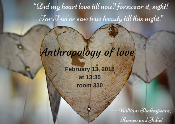 The library and anthropology department are happy to invite you to take part in the event "Anthropology of Love" dedicated to Valentine's Day. Let's get together and have a wonderful poetry evening and find out what an anthropology of love is.